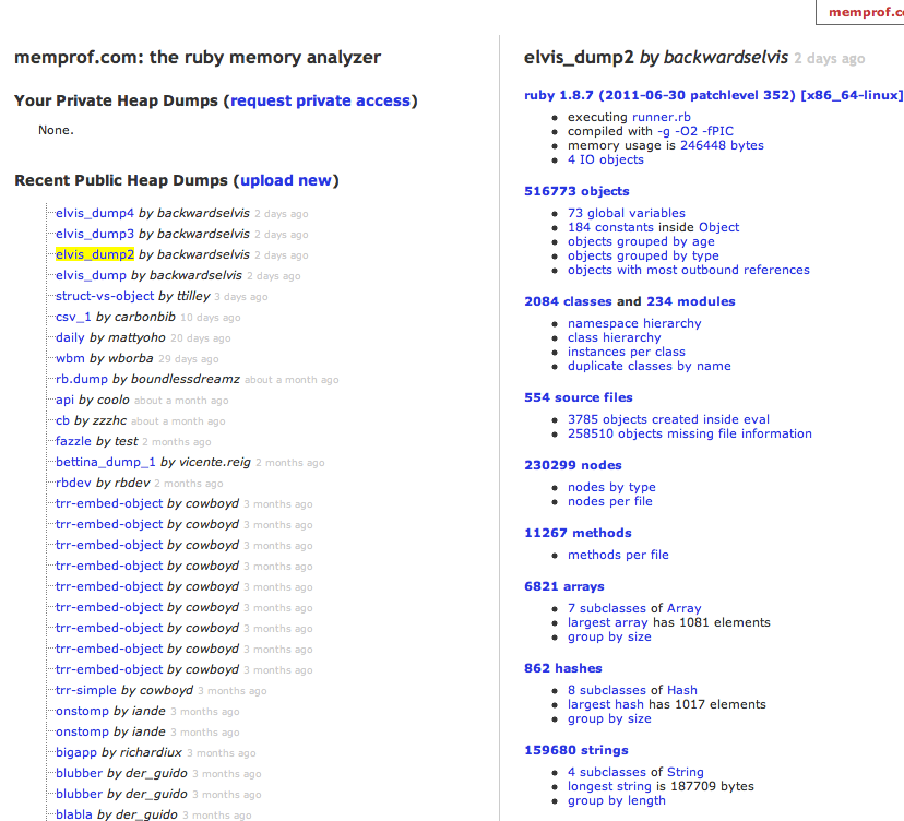 $ ps -ef | grep web_crawler.rbAfter 5 minutes, Dump Trace To Memprof.com Link to heading